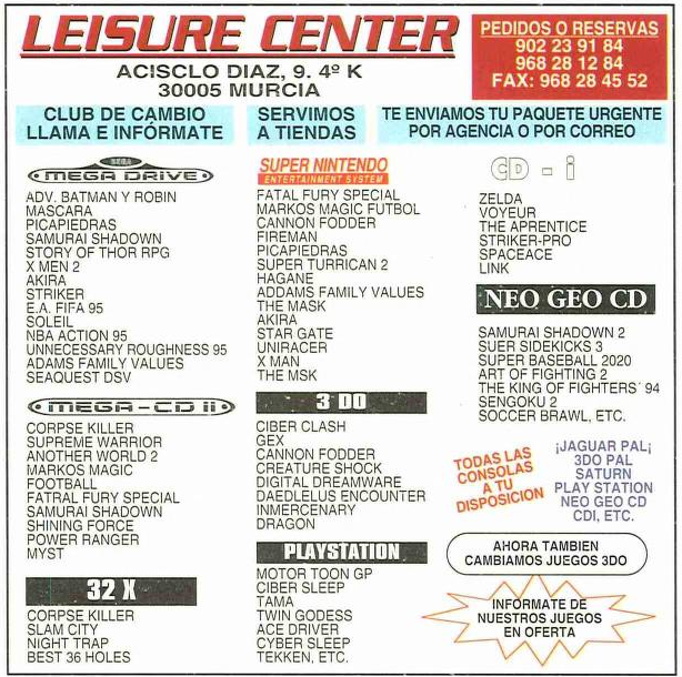 File:Hobby Consolas(ES) Issue 45 Jun 1995 Ad - Leisure Center.png